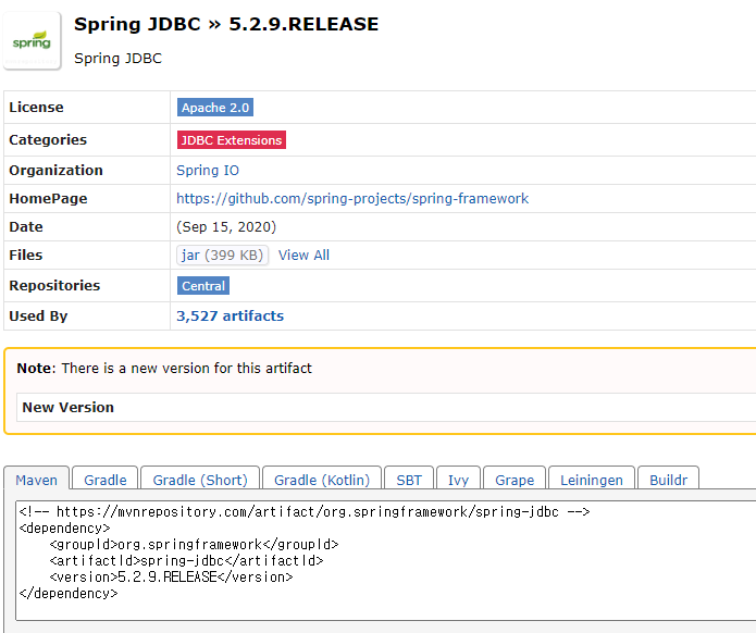https://mvnrepository.com/artifact/org.springframework/spring-jdbc/5.2.9.RELEASE