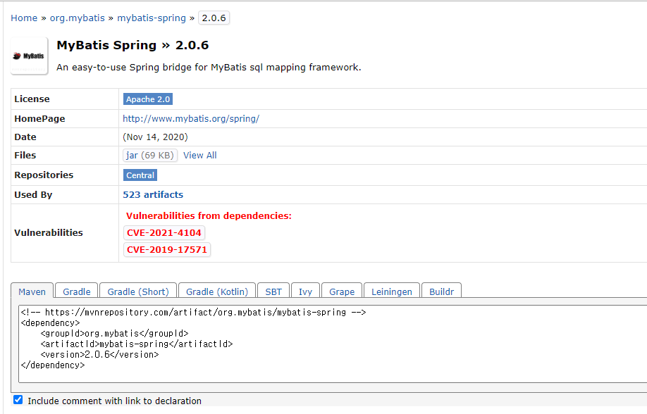 https://mvnrepository.com/artifact/org.mybatis/mybatis-spring